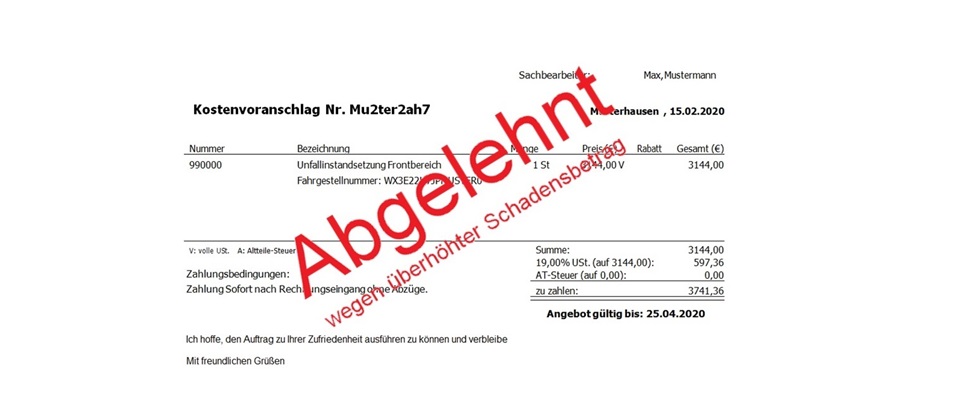 - selbst der "Laie" weiß, dass der Schaden nicht so hoch ist. (Bei Unwissenheit Raten wir Ihnen unseren Sachverständigen zu fragen)